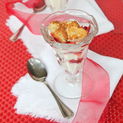 - Top the parfait with the heart-shaped pancakes. You can also layer the heart pancakes within the parfait for a decorative touch.