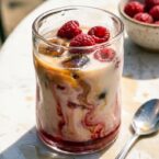 Yes. Oat milk is the creamiest non-dairy option for iced coffee. Almond milk is thinner. Coconut milk adds a tropical note that works with the raspberry.