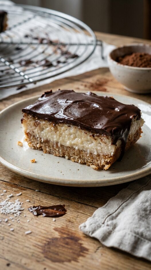 - Place the chocolate-covered coconut bars on a plate and refrigerate for at least 1 hour, or until the chocolate is completely set.