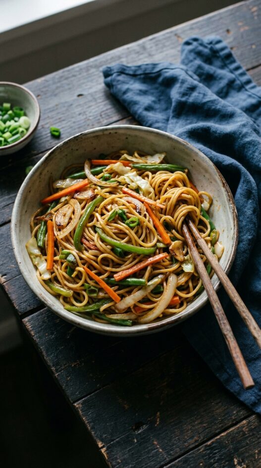 A flavorful Indo-Chinese noodle dish packed with veggies and a touch of spice. Perfect for a quick lunch or picnic!