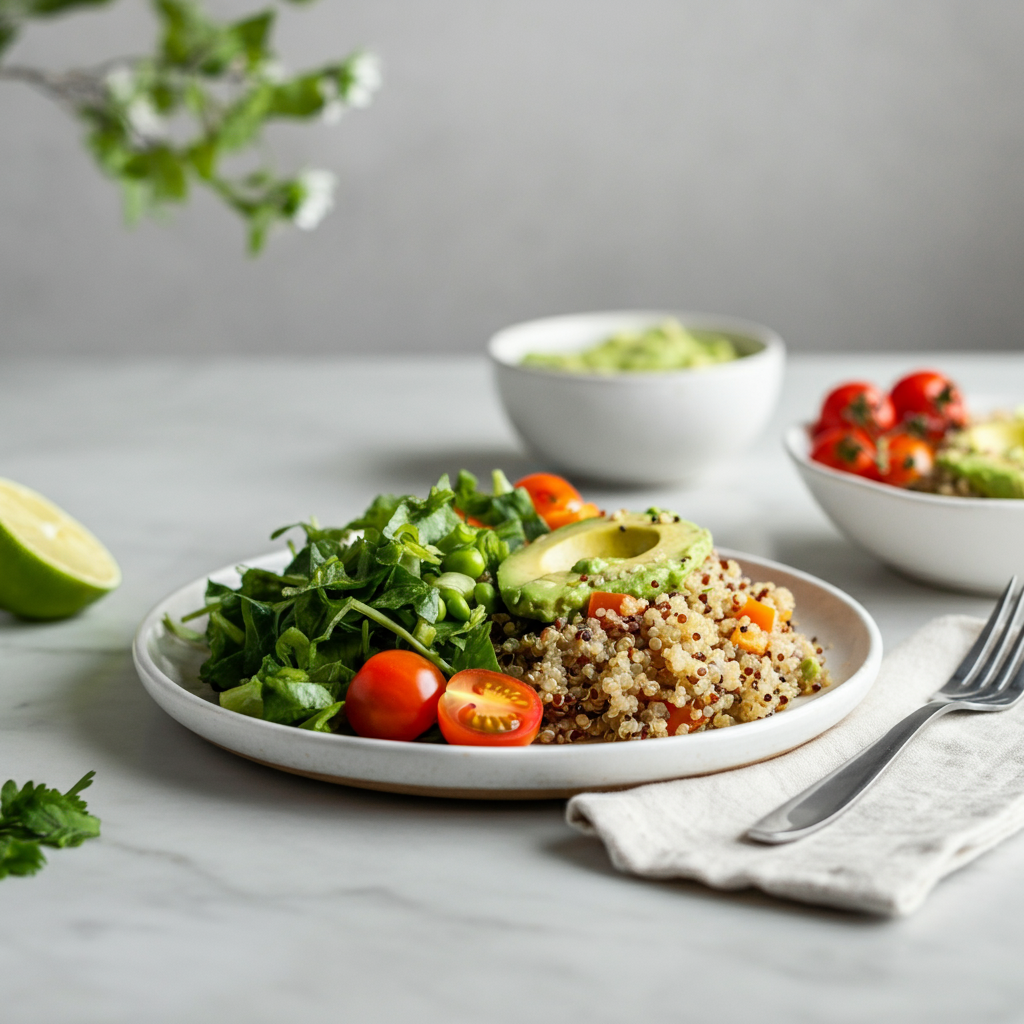 A vibrant Mexican-inspired quinoa bowl packed with flavor. Customizable with your favorite hot sauce and toppings!