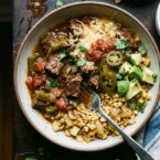 I love topping the bowl with creamy avocado and tomatoes, which add a burst of freshness, but cheese, jalapenos or salsa would also be great additions.
