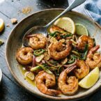 - Prep ingredients: clean and devein shrimp; pat dry.