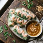 Fresh, flavorful spring rolls packed with shrimp and herbs. Served with a creamy peanut dipping sauce.