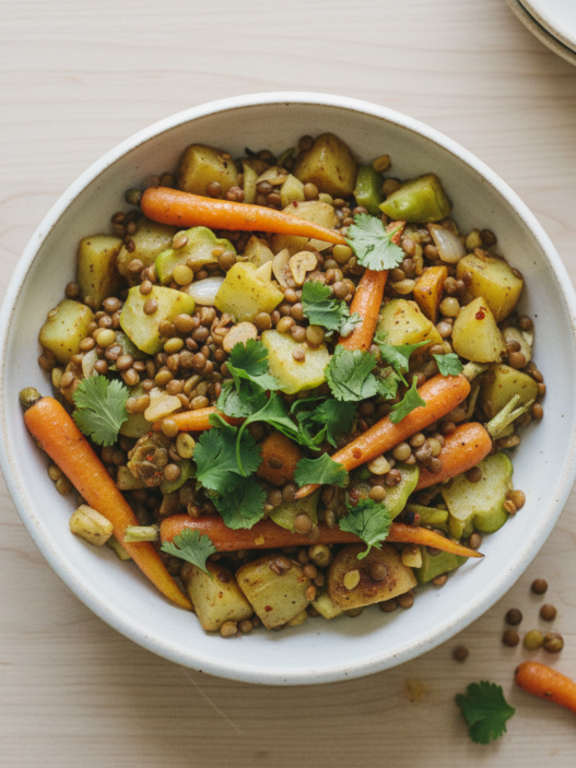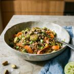 - Combine the cooked grain, carrots, and onions in a serving bowl and mix thoroughly.