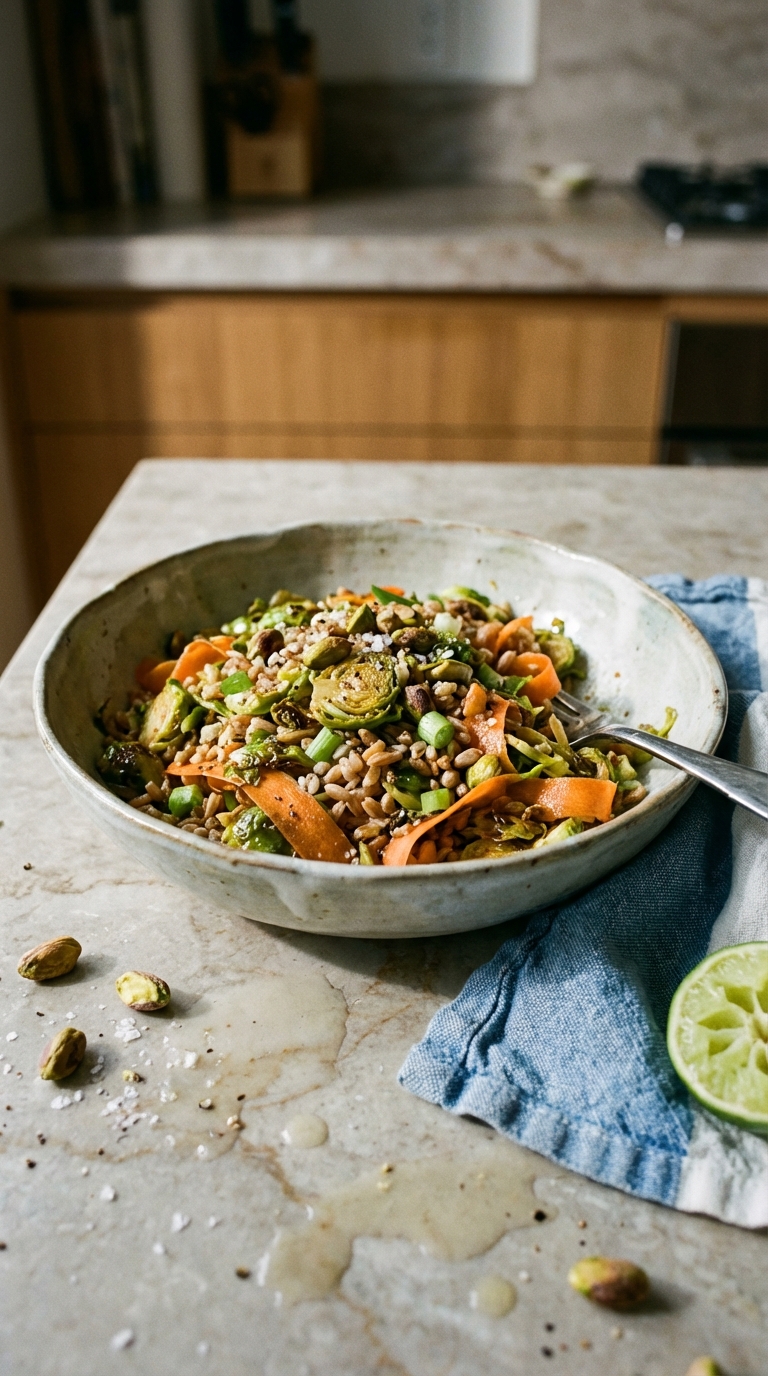 A healthy salad gets a delicious fried upgrade. Crispy sprouts and grains make this a satisfying side.