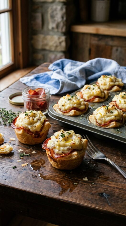 Buttery puff pastry bites are filled with capicola, a cured meat, and topped with soft mashed potatoes before being baked to perfection. A blissful holiday appetizer.