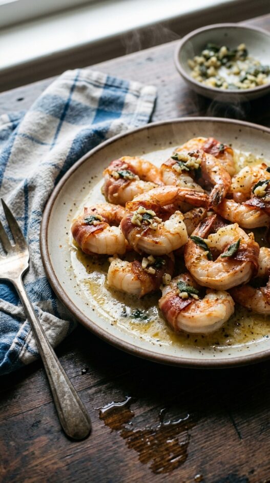 Wine and Prosciutto-Wrapped Shrimp with Sage-Garlic Butter