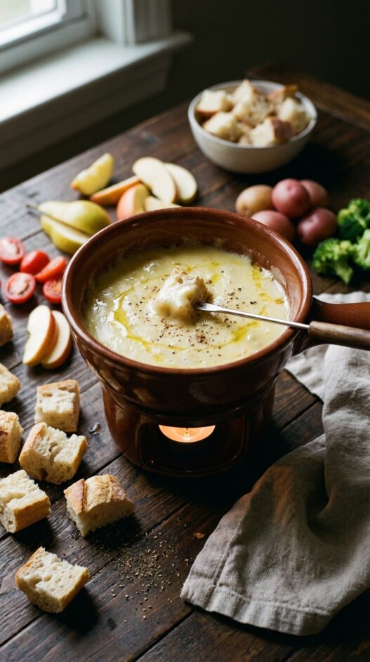 A rich and decadent cheese fondue, perfect for a cozy night in or a fun gathering with friends. This classic recipe is easy to follow and always a crowd-pleaser.