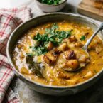 This is not a light soup. Serve it with something acidic like pickles or a sharp salad to cut through the richness.