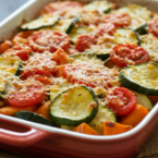 A colorful medley of roasted root vegetables and summer squash baked until tender and topped with a crispy Parmesan breadcrumb crust. A perfect side dish or a light vegetarian main.