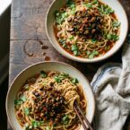 A delicious plant-based twist on traditional Chinese noodle dishes, using ya-cai, finely chopped shiitake mushrooms and red bell peppers to create an umami-rich and flavorful topping.