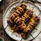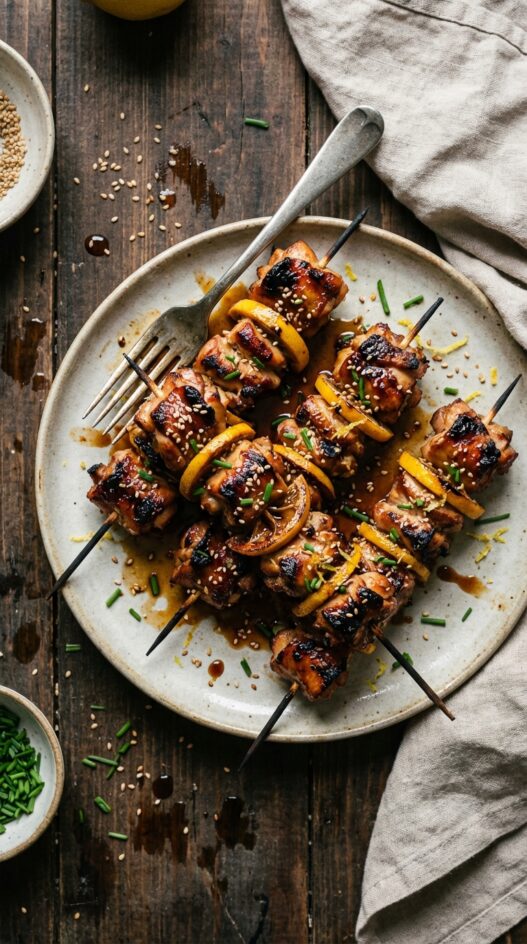Succulent chicken skewers are grilled to perfection, then basted in a rich, sweet-savory glaze. Pairs perfectly with a crisp red wine.