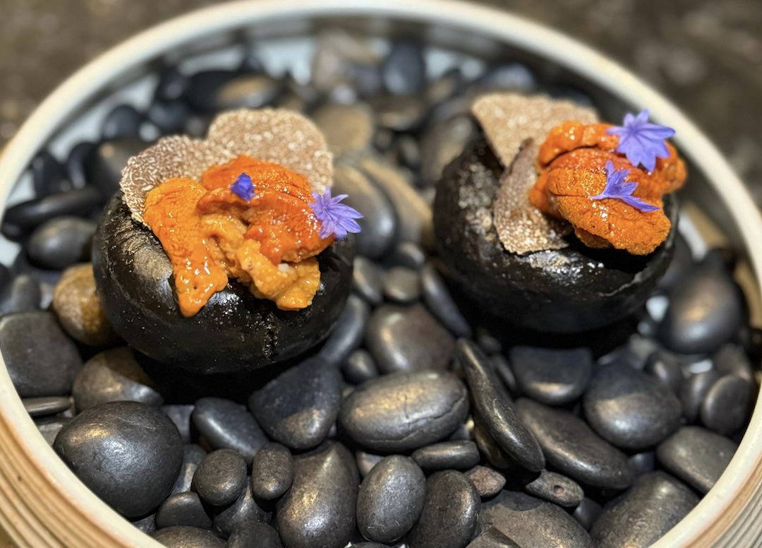 The second course reimagines the Bao through the lens of traditional steamed mantou, or the Chinese steamed bun. The main difference between a bao and a mantou, being that mantou is a dough wrapped around a filling that can be sweet or savory. In this case, the airy buns are filled with truffled sweet potato purée, then squid-ink-fried to give the exterior a crisp edge. Far from your average Bao bun, this one was also topped with fresh uni. At no point could I predict the texture of what I was about to eat, and that’s what makes this menu really stand out.