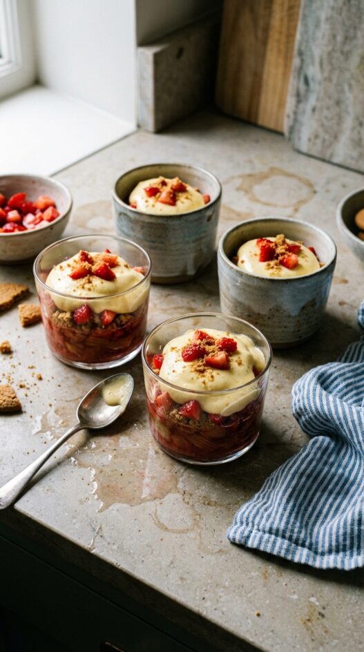 Zabaglione with Rhubarb, Strawberries, and Ginger Cookie Crumble